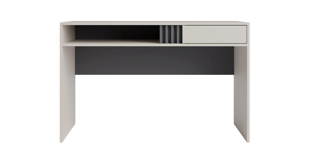 Nowoczesne biurko z szufladą i półką ALLMO 120 cm w kolorze kaszmir to funkcjonalne biurko do biura, gabinetu lub pokoju młodzieżowego, które zapewnia wygodne miejsce do pracy, nauki i korzystania z komputera. To biurko 120 cm dobrze sprawdza się zarówno w domu, jak i w przestrzeni biurowej.
