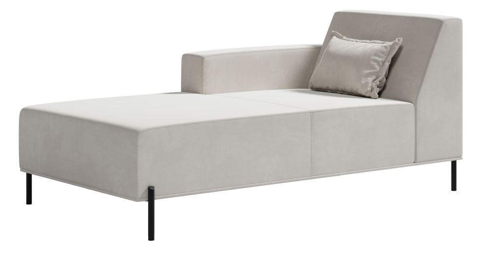 To szezlong do salonu, który może funkcjonować jako samodzielny element aranżacji lub jako uzupełnienie sofy czy narożnika z tej samej kolekcji. Świetnie sprawdza się w większych przestrzeniach, gdzie pełni rolę komfortowej strefy relaksu, ale równie dobrze odnajduje się w bardziej kameralnych wnętrzach.