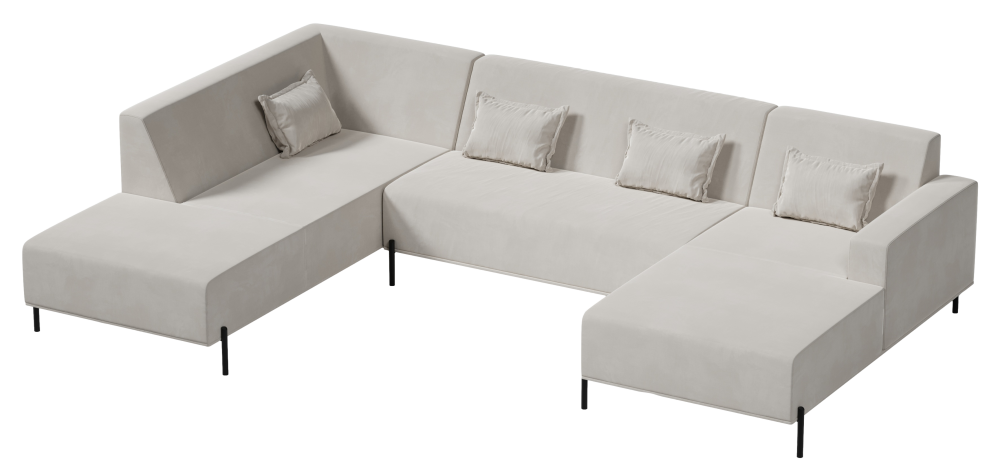 Dzięki dużej powierzchni użytkowej, komfortowi i nowoczesnej formie narożnik Cuscino U Model 3 to idealny wybór do wnętrz, w których liczy się przestrzeń, wygoda i spójna aranżacja strefy wypoczynkowej.
