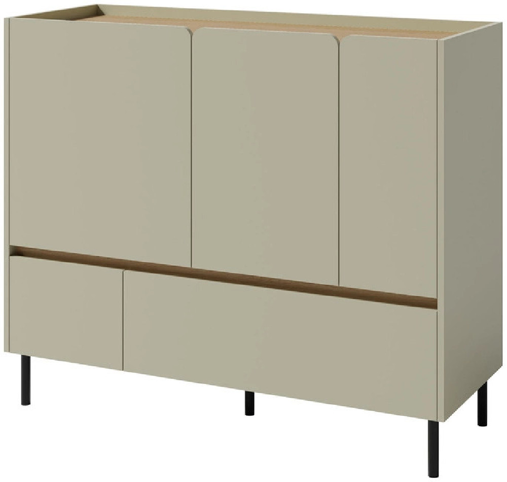 Nowoczesna forma oraz kolor eukaliptus sprawiają, że komoda dobrze pasuje do nowoczesnych i minimalistycznych wnętrz. Komodę można zestawić z innymi meblami z kolekcji LUCA, tworząc spójne wyposażenie salonu.