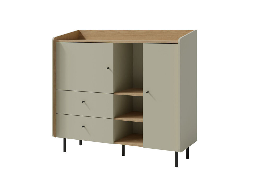 Nowoczesna komoda z szufladami 125 cm ALESSIO w kolorze eukaliptus to funkcjonalny mebel do salonu, przedpokoju lub sypialni, który łączy pojemne przechowywanie z nowoczesnym wyglądem. Ta komoda do salonu i przedpokoju została zaprojektowana tak, aby pomóc uporządkować przestrzeń i jednocześnie zachować lekkość aranżacji wnętrza.