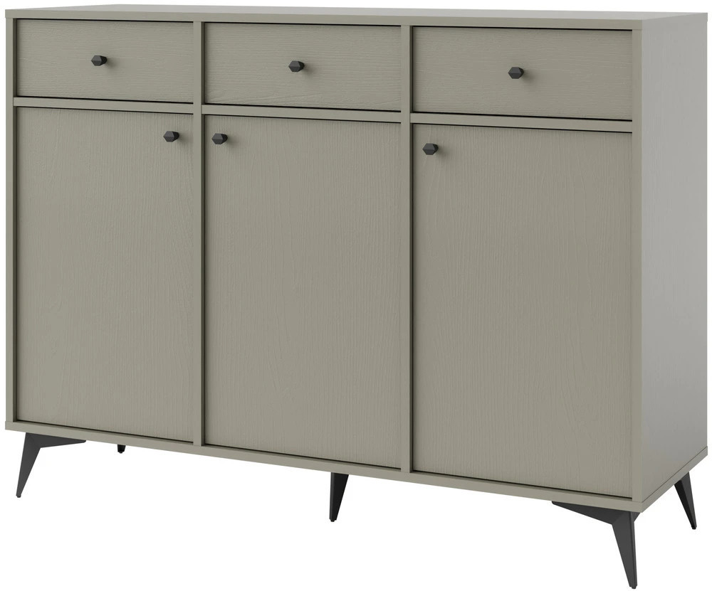 Duża komoda z szufladami TOKYO 124,5 cm w kolorze eukaliptus to funkcjonalny i estetyczny mebel do salonu, który łączy dużą pojemność z nowoczesnym designem. Ta duża komoda z szufladami została zaprojektowana z myślą o uporządkowanej i komfortowej przestrzeni.