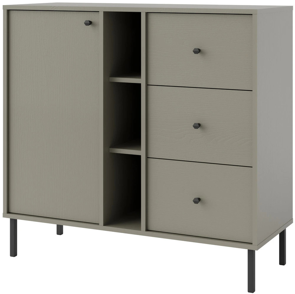 Mała komoda TOKYO 100 cm w kolorze eukaliptus to nowoczesny i funkcjonalny mebel do salonu, przedpokoju lub sypialni. Ta mała komoda została zaprojektowana z myślą o praktycznym przechowywaniu oraz spójnym, eleganckim wyglądzie wnętrza.