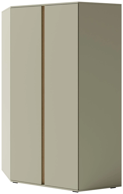 Szafa narożna LUCA 95 cm dostępna jest w eleganckich, neutralnych wariantach kolorystycznych: beż piaskowy oraz eukaliptus. Taka kolorystyka pasuje do wnętrz nowoczesnych, skandynawskich i minimalistycznych, a bryła mebla pozwala spójnie urządzić sypialnię lub garderobę.