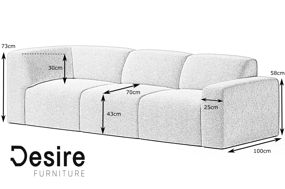 Model 3 wyróżnia się wyjątkowym komfortem użytkowania. Głębokie siedzisko, miękkie poduchy i odpowiednio wyprofilowane oparcie sprawiają, że sofa staje się idealnym miejscem wypoczynku po długim dniu. Sofa modułowa Desire z tej serii może być zarówno centralnym punktem salonu, jak i częścią większego zestawu z narożnikiem, szezlongiem lub pufą z tej samej kolekcji. Dzięki swojej konstrukcji sofa modułowa Modulare pozwala zmieniać aranżację w dowolnym momencie – tak, jak zmienia się Twój styl życia.