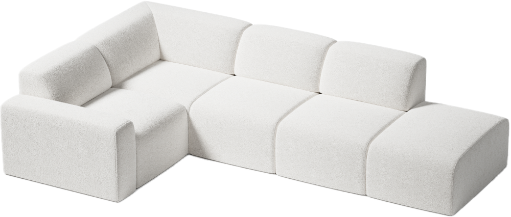 Kolekcja Modulare obejmuje także narożniki modułowe w układzie L oraz U, które pozwalają stworzyć wygodną strefę wypoczynkową dopasowaną do wielkości pomieszczenia. Wśród modeli L dostępne są m.in. Model 5 oraz Model 9. Dla większych przestrzeni idealnym rozwiązaniem będą zestawy U, takie jak Model 4. Narożniki modułowe Modulare można dowolnie rozbudowywać i zmieniać ich układ wraz ze zmianą aranżacji wnętrza.