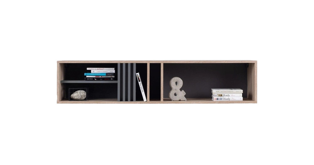 To nowoczesna półka na książki i dekoracje, która może pełnić zarówno funkcję praktyczną, jak i aranżacyjną. Sprawdzi się nad komodą, szafką RTV, biurkiem lub w strefie wypoczynkowej, gdzie pozwoli stworzyć uporządkowaną kompozycję bez zajmowania miejsca na podłodze.