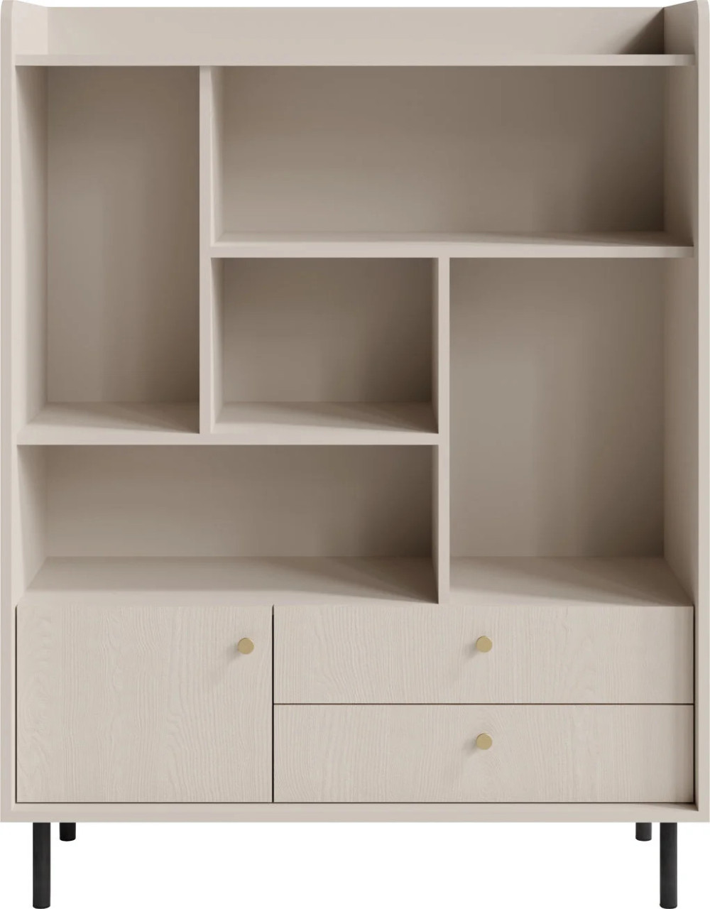 Regał na książki GRANDE 103.5 cm w kolorze beż piaskowy to funkcjonalny regał do salonu, biura lub pokoju, który zapewnia wygodne miejsce do przechowywania książek, dokumentów i dekoracji. Ten regał na książki pozwala uporządkować domową biblioteczkę i wyeksponować ulubione książki.