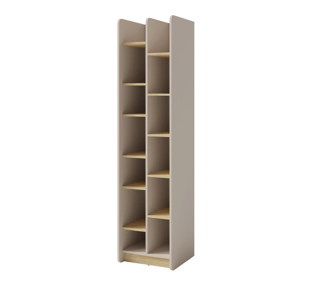 Regał stojący z półkami 55 cm ALESSIO w kolorze beż piaskowy to nowoczesny i praktyczny mebel, który doskonale sprawdzi się w salonie, domowym biurze, sypialni lub pokoju młodzieżowym. Ten wąski regał do salonu i biura został zaprojektowany z myślą o wnętrzach, w których liczy się funkcjonalność, lekkość wizualna i spójny wygląd całej aranżacji.