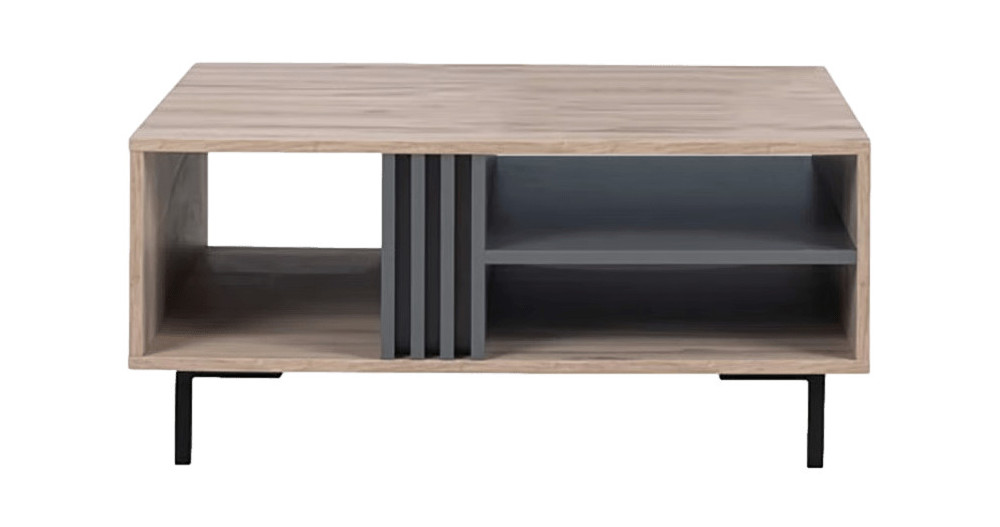 To stolik kawowy z półką, która zwiększa jego funkcjonalność i pozwala lepiej uporządkować przestrzeń wokół sofy lub narożnika. Dodatkowe miejsce pod blatem można wykorzystać na piloty, czasopisma lub drobne akcesoria, dzięki czemu blat główny pozostaje bardziej uporządkowany i wygodny w codziennym użytkowaniu.
