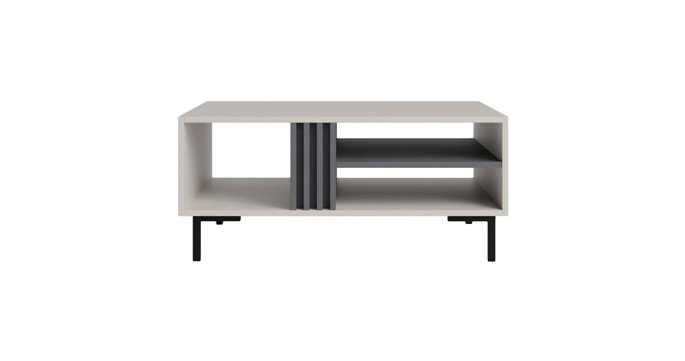 Charakterystyczne frezowania oraz czarne nóżki nadają meblowi nowoczesnego charakteru i sprawiają, że stolik dobrze wpisuje się w aranżacje o nowoczesnym i loftowym stylu. Kolor kaszmir nadaje wnętrzu jasny i elegancki wygląd.