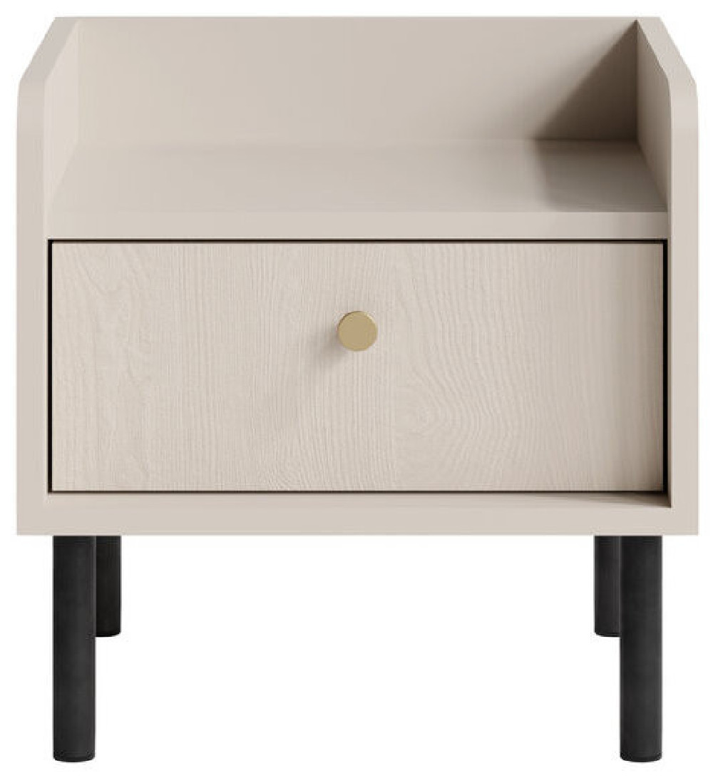 Nowoczesna szafka nocna GRANDE beż piaskowy to praktyczny i estetyczny mebel do sypialni, który łączy funkcjonalność z nowoczesnym designem.