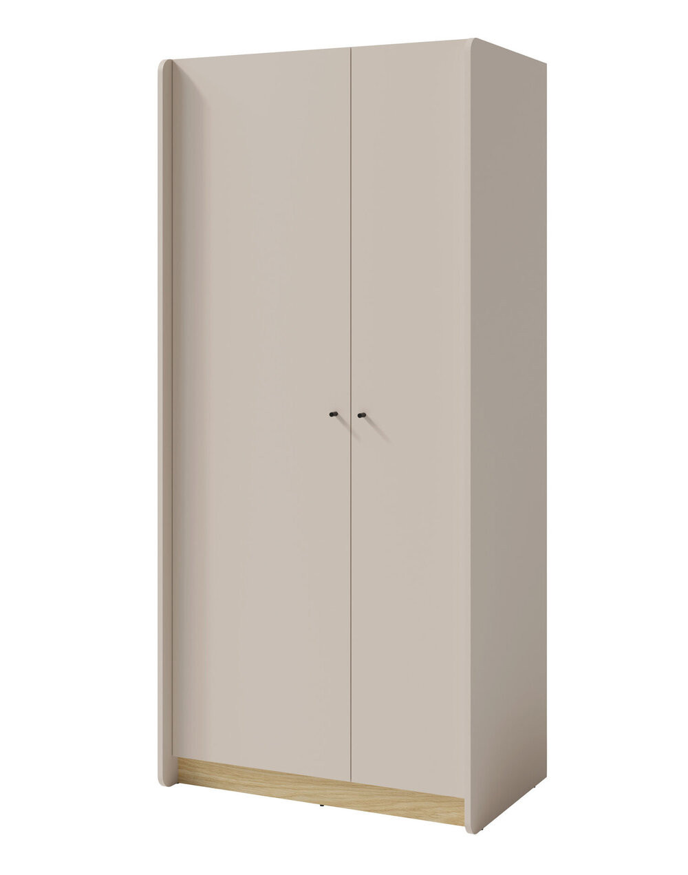 Szafa dwudrzwiowa 90 cm ALESSIO w kolorze beż piaskowy to funkcjonalna i nowoczesna szafa do sypialni, przedpokoju lub garderoby, która pozwala wygodnie przechowywać ubrania i akcesoria w uporządkowany sposób. Dzięki kompaktowej szerokości szafa dobrze sprawdzi się zarówno w większych, jak i mniejszych pomieszczeniach.