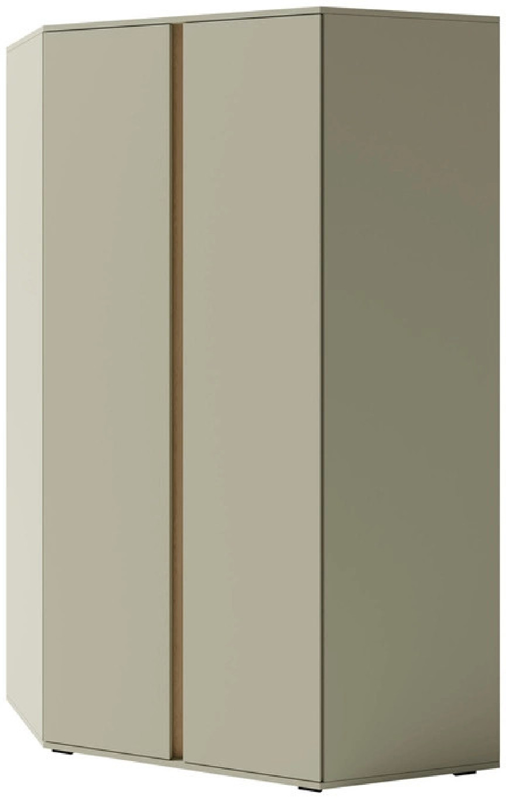 Nowoczesna forma oraz kolor eukaliptus sprawiają, że szafa narożna LUCA dobrze pasuje do nowoczesnych i minimalistycznych wnętrz. Szafę można zestawić z innymi meblami z kolekcji LUCA, tworząc spójne wyposażenie sypialni.