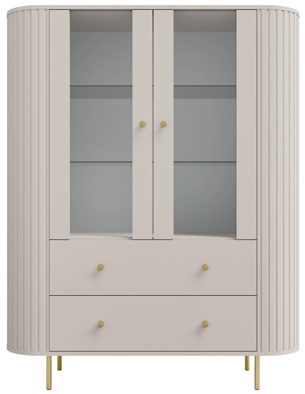 Nowoczesna witryna OVALIO 123 cm w eleganckim kolorze beż piaskowy to stylowy i funkcjonalny mebel zaprojektowany z myślą o współczesnych wnętrzach. Szerokość 123 cm oraz wysokość 155 cm sprawiają, że ta nowoczesna witryna oferuje dużo miejsca do przechowywania i ekspozycji dekoracji, zachowując jednocześnie lekką i harmonijną formę.