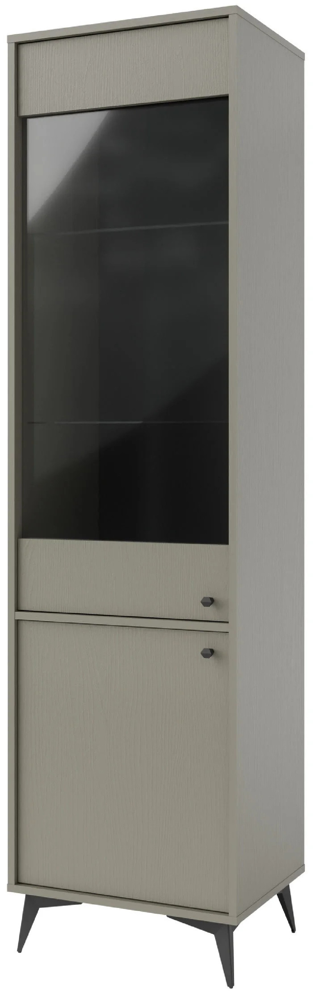 Wysoka witryna do salonu TOKYO 52 cm w kolorze eukaliptus to stylowy mebel inspirowany estetyką japońskiego minimalizmu oraz nowoczesnego stylu japandi. Smukła konstrukcja sprawia, że witryna doskonale sprawdza się w eleganckich salonach, jadalniach oraz nowoczesnych przestrzeniach dziennych.